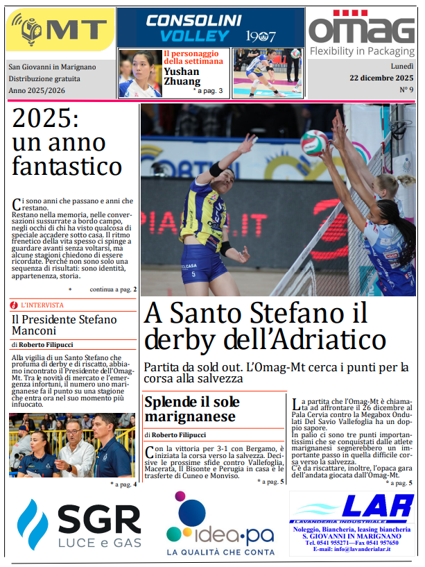 北京时间12月23日,效力于意大利女排意甲联赛圣乔瓦尼俱乐部(Volley San Giovanni)的中国新生代主攻手庄宇珊,荣登意大利《Corriere di Romagna》体育专栏“周刊人物”封面鑫优配,并接受了专题专访。在长篇专访中,这位年仅22岁的中国球员谈及了她的成长之路、首次留洋的心路历程、对排球的热爱、以及她对未来的目标:“不断突破自我,成为更好的球员和更成熟的人”。