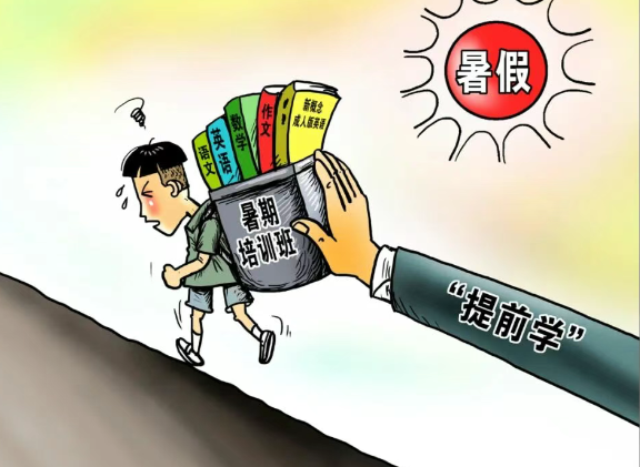 “周一周三上初一数学课,周二周四上英语课。”“好多同学都在补课,不补课的话,新学期开学会跟不上的。”据半月谈报道,不少家长担心孩子跟不上别人的进度,大搞超前学习,小学生忙着上初中课程,有的甚至提前学完初二重点课程。无论暑假还是双休日,孩子的时间都被各种辅导班安排得满满当当。